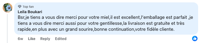 Notre mission est simple : vous offrir un miel naturel, sain et savoureux, qui accompagne aussi bien votre quotidien que vos moments de bien-être. Chez Darelikram, nous nous engageons à vous proposer des produits authentiques, sans additifs ni conservateurs, pour que vous profitiez pleinement de la pureté du miel et de ses bienfaits.