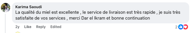 Bienvenue sur Dar el ikram, votre boutique en ligne dédiée au miel naturel et authentique, récolté avec soin pour préserver toutes ses vertus et sa richesse en saveurs.