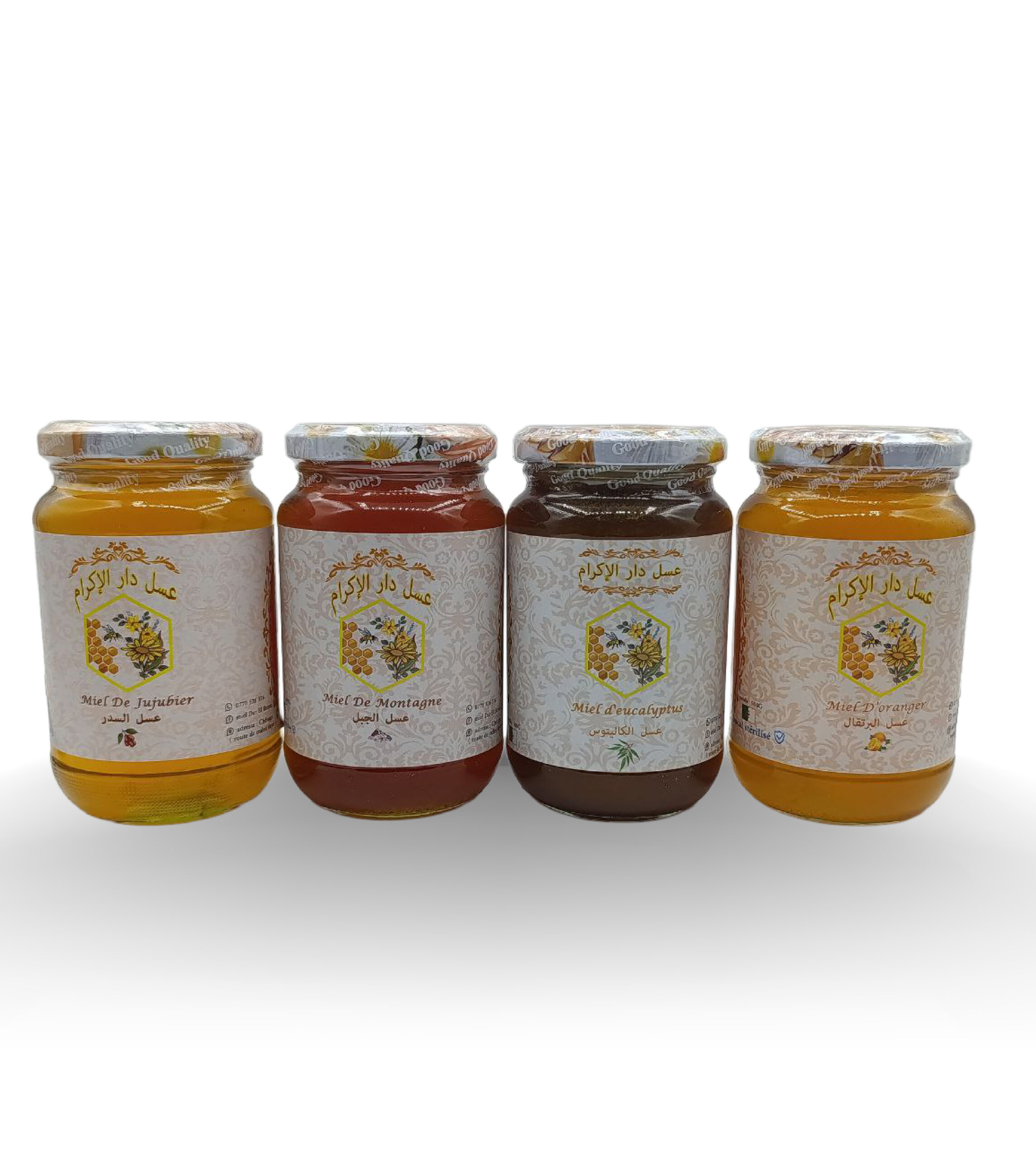 🌿 Miel de Jujubier (Sidr) : Rare et raffiné, apprécié pour ses bienfaits revitalisants et cicatrisants.